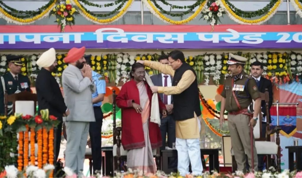 देहरादून। राष्ट्रपति द्रौपदी मुर्मू ने उत्तराखण्ड राज्य स्थापना दिवस के मौके पर उत्तराखंड की मातृ शक्ति व वीर सैनिकों को नमन करते हुए प्रदेशवासियों को बधाई दी। अपने सम्बोधन में राष्ट्रपति मुर्मू ने निवेशकों के राज्य के प्रति बढ़ रहे उत्साह को रेखांकित करते हुए विकास में इकोलॉजी व इकोनॉमी के बीच समन्वय का भी उल्लेख किया। गुरुवार को पुलिस लाइन में आयोजित रैतिक परेड के अवसर पर राष्ट्रपति ने कहा कि अपनी अलग पहचान स्थापित करने और अपने विकास का रास्ता तय करने का उत्तराखंड के निवासियों का सपना आज ही के दिन यानी 9 नवंबर को, वर्ष 2000 में उत्तरांचल राज्य की स्थापना के साथ पूरा हुआ था। उन्होंने कहा कि उस समय अटल बिहारी वाजपेयी देश के प्रधानमंत्री थे। बाद में राज्य का नाम बदलकर उत्तराखंड रखा गया। यह प्रसन्नता की बात है कि नई पहचान के साथ उत्तराखंड के परिश्रमी लोगों ने राज्य के लिए विकास और प्रगति के नित-नूतन शिखरों पर अपने कदम जमाए हैं।