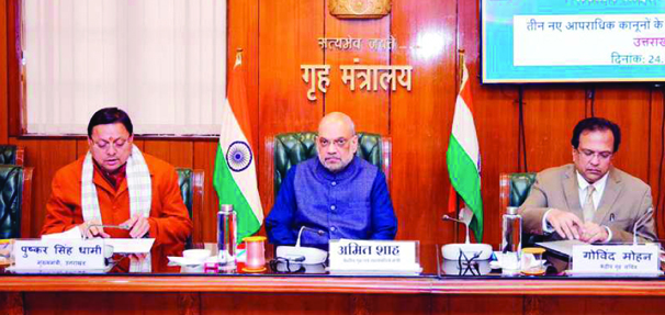 नई दिल्ली। केंद्रीय गृह मंत्री अमित शाह ने तीन नए आपराधिक कानूनों – भारतीय न्याय संहिता-2023, भारतीय नागरिक सुरक्षा संहिता-2023, और भारतीय साक्ष्य अधिनियम-2023 के उत्तराखंड राज्य में क्रियान्वयन में की गई प्रगति पर संतोष व्यक्त किया। केंद्रीय गृह मंत्री अमित शाह नई दिल्ली में आयोजित बैठक में तीन नए आपराधिक कानूनों के उत्तराखंड में क्रियान्वयन की समीक्षा कर रहे थे।
